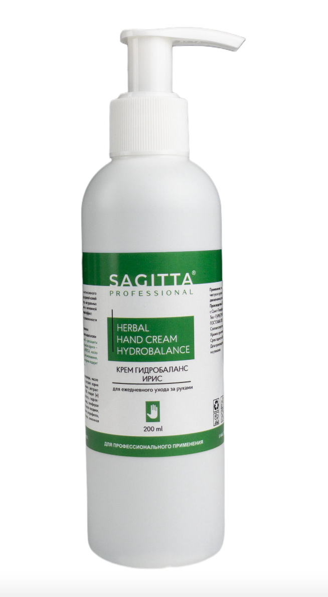 SAGITTA Professional Травяной крем для рук Гидробаланс Ирис для ежедневного ухода - предназначен для интенсивного увлажняющего и омолаживающего ухода за зрелой кожей рук.