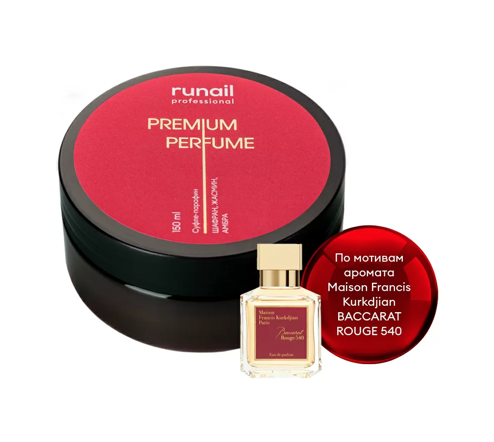 Суфле-парафин PREMIUM PERFUME имеет аромат, созданный по мотивам популярного парфюма FRANCIS KURKDJIAN BACCARAT ROUGE 540, который сочетает в себе изысканность и яркость.