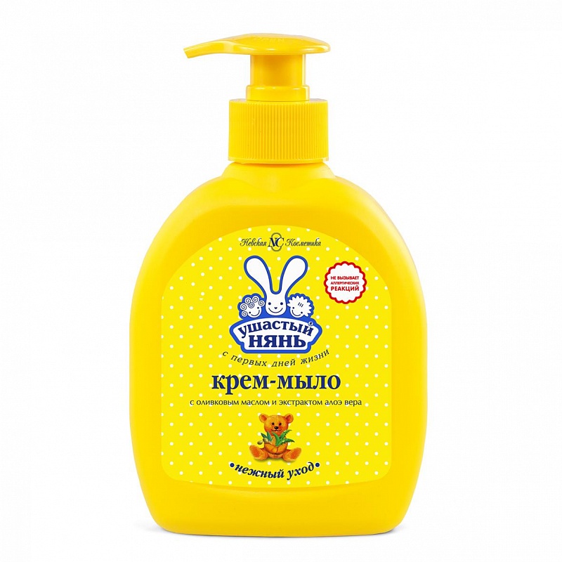 Невская Косметика Крем-мыло жидкое "Ушастый нянь" Алоэ - с натуральным увлажняющим компонентом, оливковым маслом и соком Алоэ вера предназначено для нежного ухода за кожей малышей.