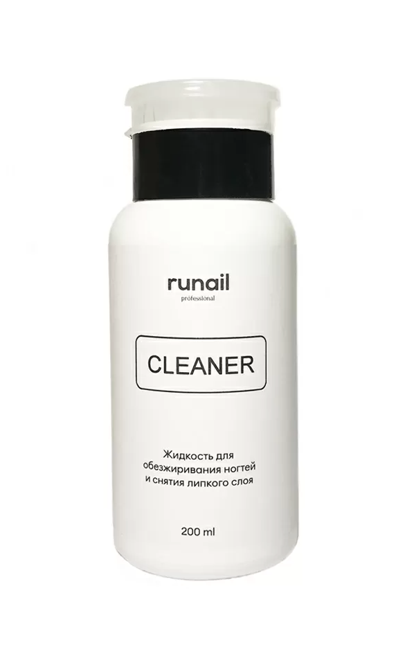 RuNail Клинсер в удобном флаконе с помпой - предназначен для обезжиривания ногтей и снятия липкого слоя.