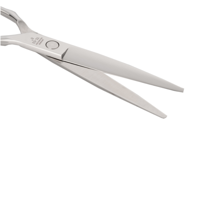 Особенность прямых ножниц в том, что с их помощью вы легко сможете сделать скользящий срез (слайсинг). Эргономичная форма изделия и наличие упора для мизинца позволяет правильно и удобно держать ножницы. Сочетание запатентованного механизма винтовой группы и высокого качества подшипника (Techno) обеспечивает равномерный прижим полотен ножниц на протяжении всего срока эксплуатации.