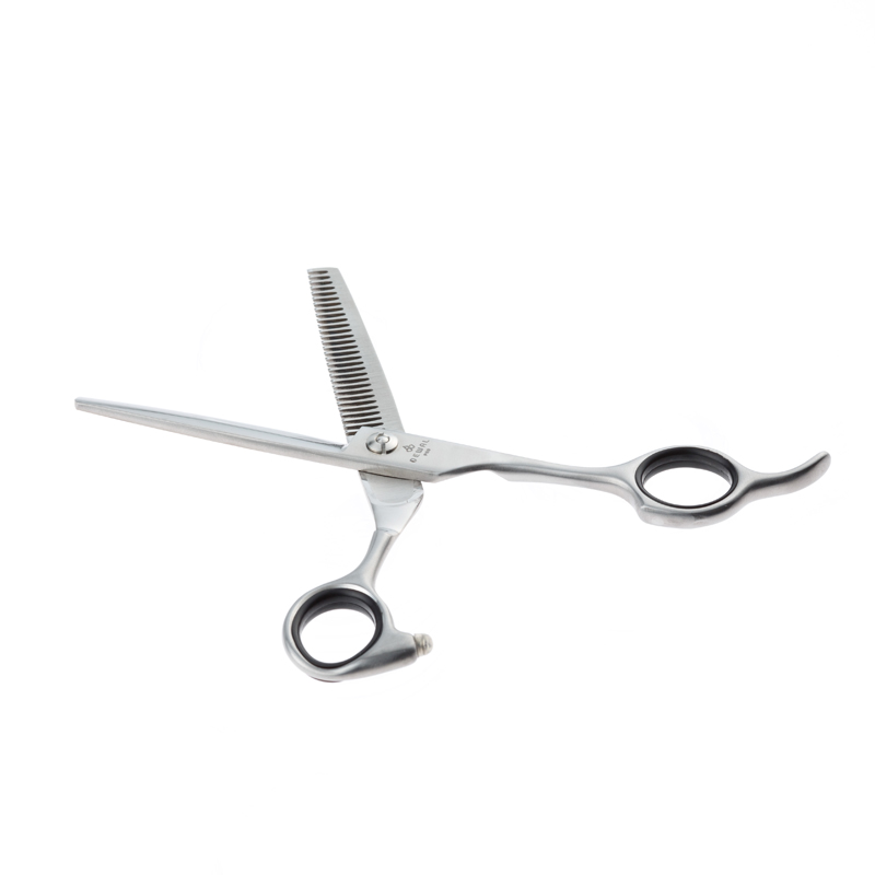 Данная модель имеет длину 6 дюймов, на одном из двух полотен имеются 30 специальных зубцов, которые обеспечивают частичный срез объема волос для осуществления филировки.