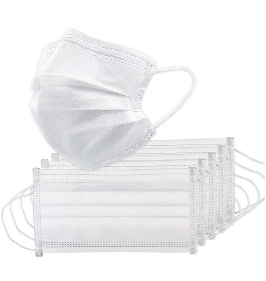 - БИНОВИ Маска 3-х слойная белая, фильтр-мелтблаун, 1/50 шт, коробка