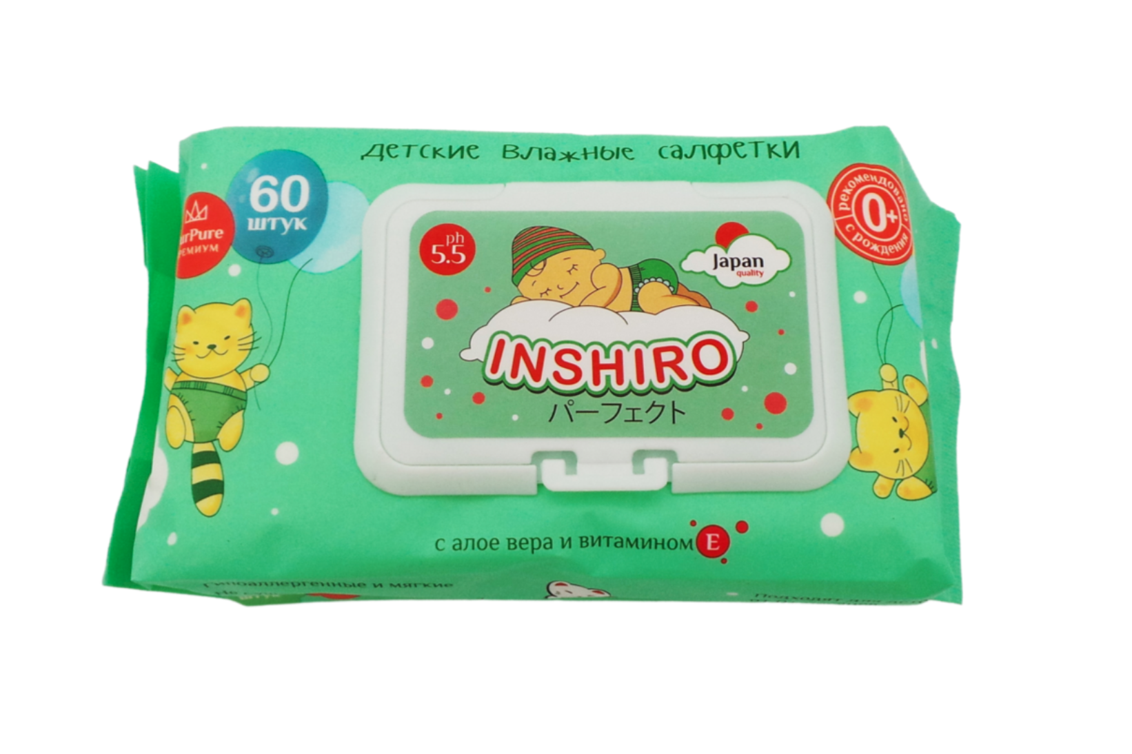 - INSHIRO Салфетки влажные детские Алоэ, 60 шт.