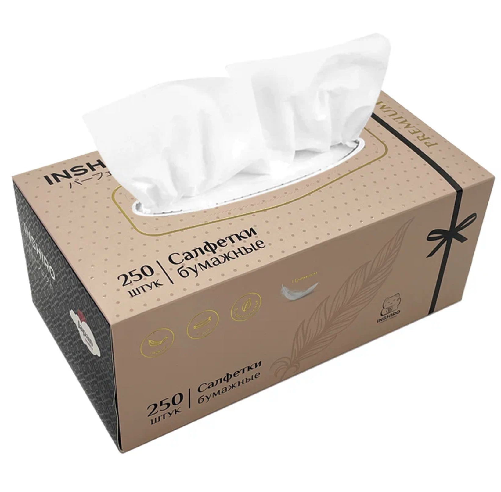- INSHIRO Салфетки белые 2-х слойные в коробке, 250 шт.