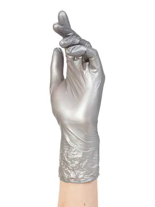 Adele Перчатки нитриловые Серебро - изготавливаются из нитрильного (искусственного) каучука, обладает высокой эластичностью и прочностью, устойчив к воздействию кислот, химических веществ, переносит высокие температуры.