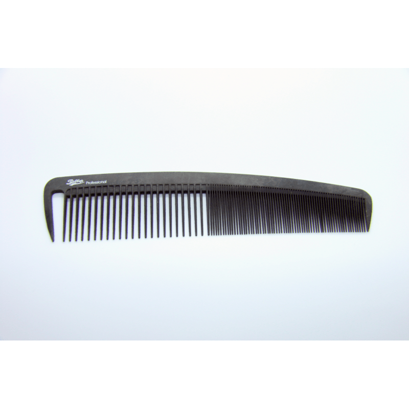 Ультратонкая расческа из высококачественного карбона, которая не скользит в руке мастера при стрижке. Совершенно не элетролизует волосы, гипоаллергенная.