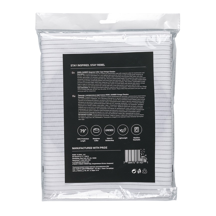 REBEL BARBER Пеньюар Vintage Classics - классический полосатый пеньюар с неопреновым воротником для парикмахеров и барберов.