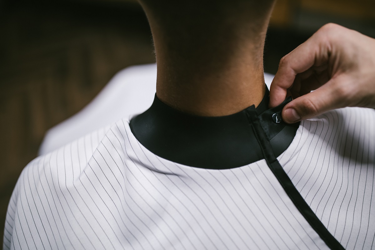 Классический полосатый пеньюар с неопреновым воротником для парикмахеров и барберов. Отличается от прочих специальной защитой шеи, которая выполнена из высококачественного неопрена. Неопрен - современный, прочный, лёгкий материал из каучука. Он устойчив к УФ-излучению, водостойкий и обладает отличными эластичными свойствами.