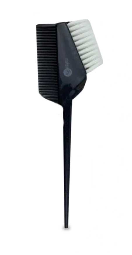 Данное изделие сочетает в себе 2 необходимых любому стилисту инструмента: кисть и расческу. Первая имеет стойкий к агрессивной химии синтетический ворс, идеально подходящий для нанесения краски ровным слоем. Вторая - обладает частыми зубчиками небольшой толщины, прекрасно распутывающими локоны и создающие проборы.