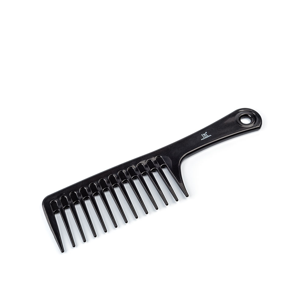 Закругленные зубья обеспечивают легкое расчесывание кудрявых волос, не повреждая их естественную структуру и сохраняя натуральный блеск. Гребень позволяет с легкостью структурировать крупный рельеф при создании причесок. Пластик в составе делает изделие простым в использовании.