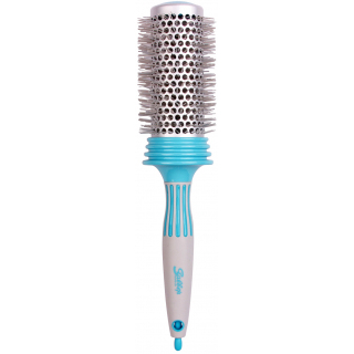 С разделителем прядей, титановым покрытием втулки и нейлоновой щетиной, способной работать при высоких температурах до 260 С. Оснащен системой Round Technology, предотвращает повреждение волос клиента и исключает возможность наматывания пряди между ручкой и основанием.