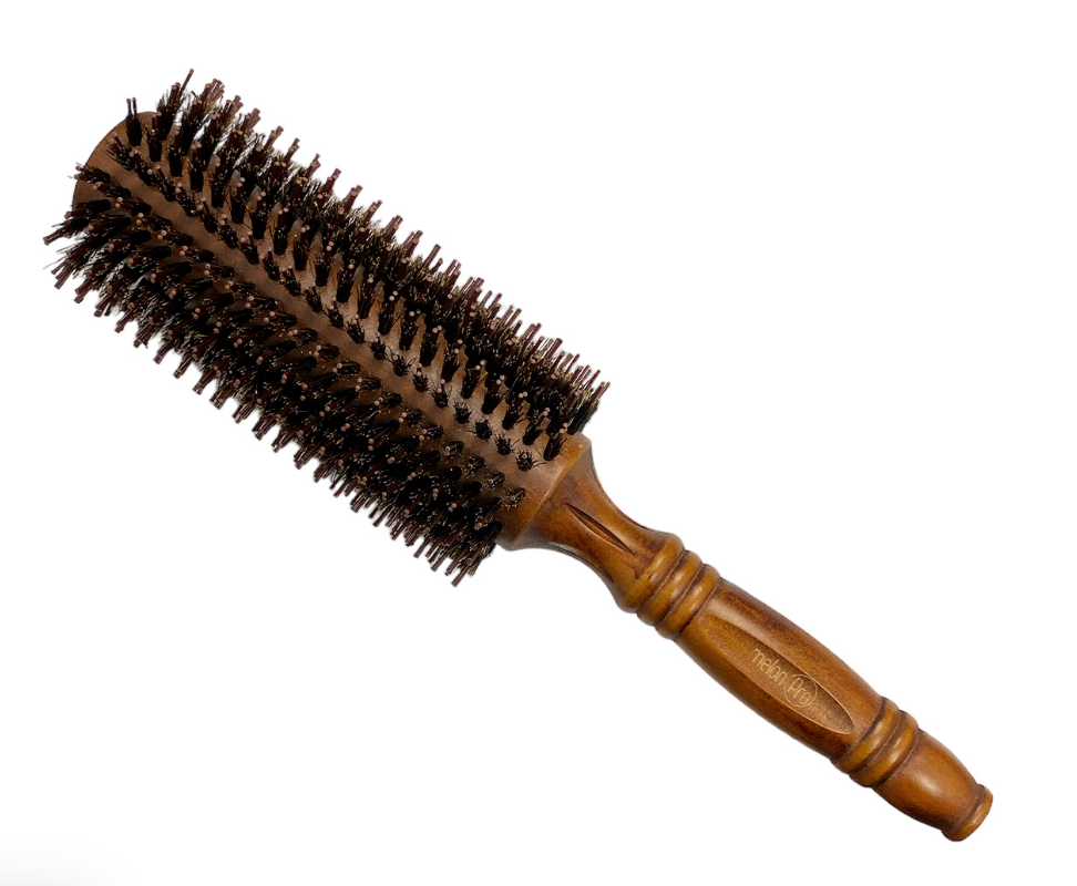 Щетина кабана, обладающая антистатическими свойствами, мягко скользит по волосам, не повреждая их структуру делая их шелковистыми, а благодаря удлинению рабочей поверхности, брашинг способен ухватить больший объем волос, тем самым ускорить работу.