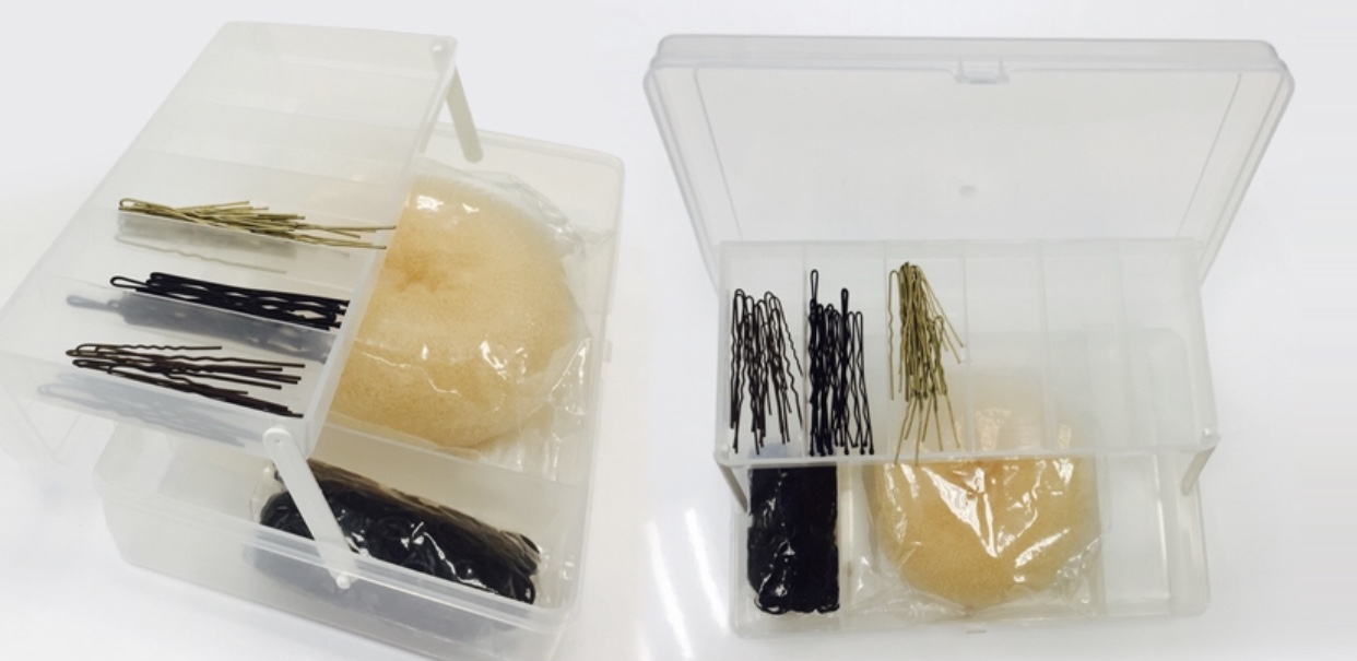 Коробка для парикмахерских аксессуаров прозрачная двухярусная.