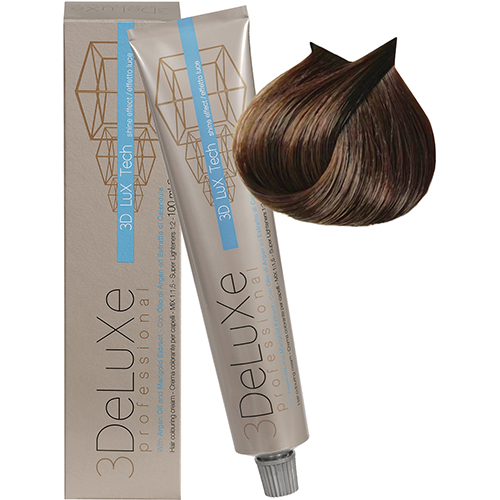 3DELUXE Итальянская профессиональная, высокопигментированная, стойкая Крем-краска для волос с экстрактом календулы, маслом арганы и аскорбиновой кислотой - обеспечивает интенсивный уход за волосами, обладает антиоксидантными, увлажняющими, стабилизирующими свойствами.