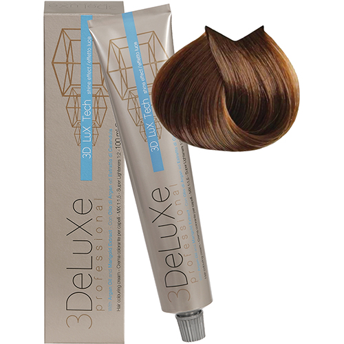 3DELUXE Итальянская профессиональная, высокопигментированная, стойкая Крем-краска для волос с экстрактом календулы, маслом арганы и аскорбиновой кислотой - обеспечивает интенсивный уход за волосами, обладает антиоксидантными, увлажняющими, стабилизирующими свойствами.