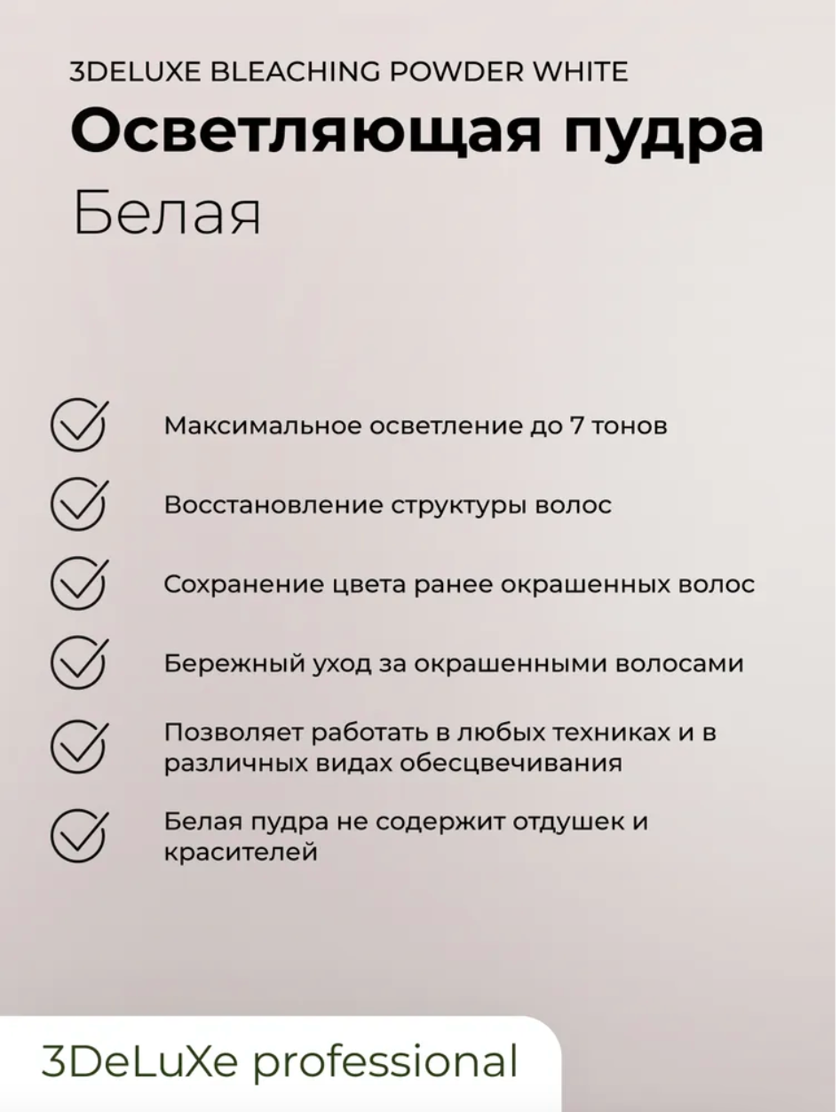 3DELUXE Непылящая микрогранулированная Осветляющая пудра Белая - обесцвечивает до 7 тонов.