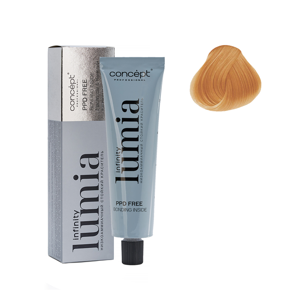 - КОНЦЕПТ INFINITY LUMIA Низкоаммиачный стойкий краситель 10.4 Очень светлый блондин медный, 100 мл.