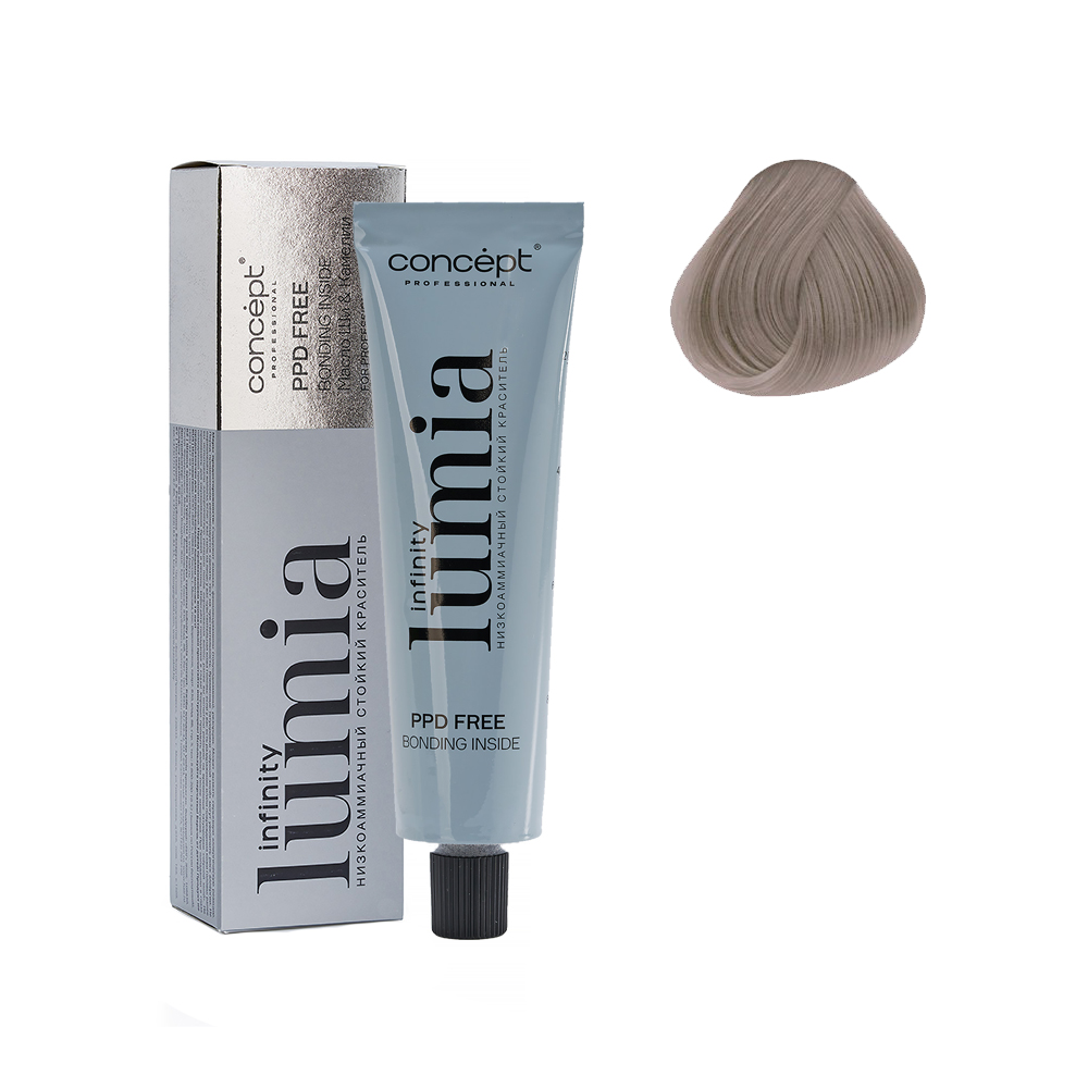- КОНЦЕПТ INFINITY LUMIA Низкоаммиачный стойкий краситель 8.81 Блондин жемчужно-пепедьный, 100 мл.