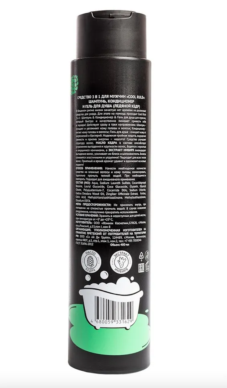 - Cool Rule Средство для мужчин 3 в 1, Ледяной Кедр, 400 мл.