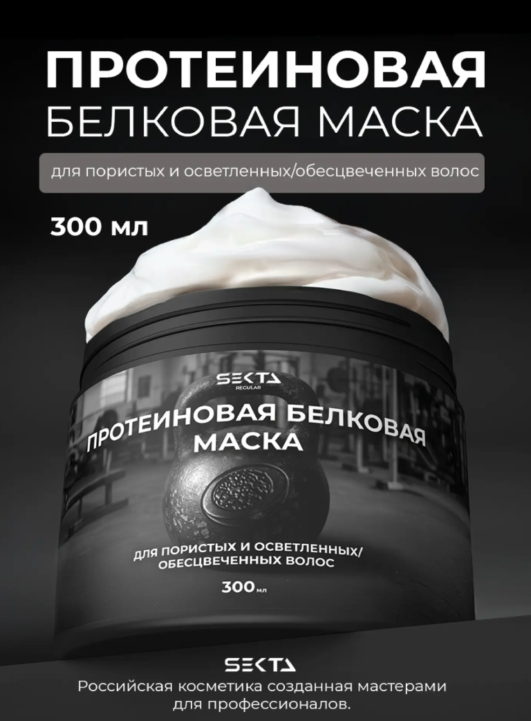 Hair Sekta Протеиновая белковая маска для пористых и осветленных/обесцвеченных волос - Продукт направлен на заполнение пустот в пористых участках волос, что придает разглаживание, мягкость и облегчает расчесывание.
