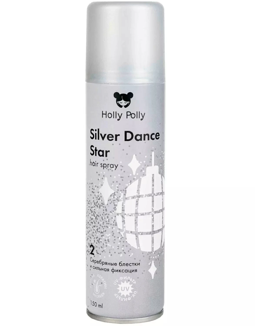Holly Polly Лак для волос сильной фиксации с серебряными блестками - обеспечивает сильную фиксацию, эффект мерцания, идеально подходит для создания праздничного образа.