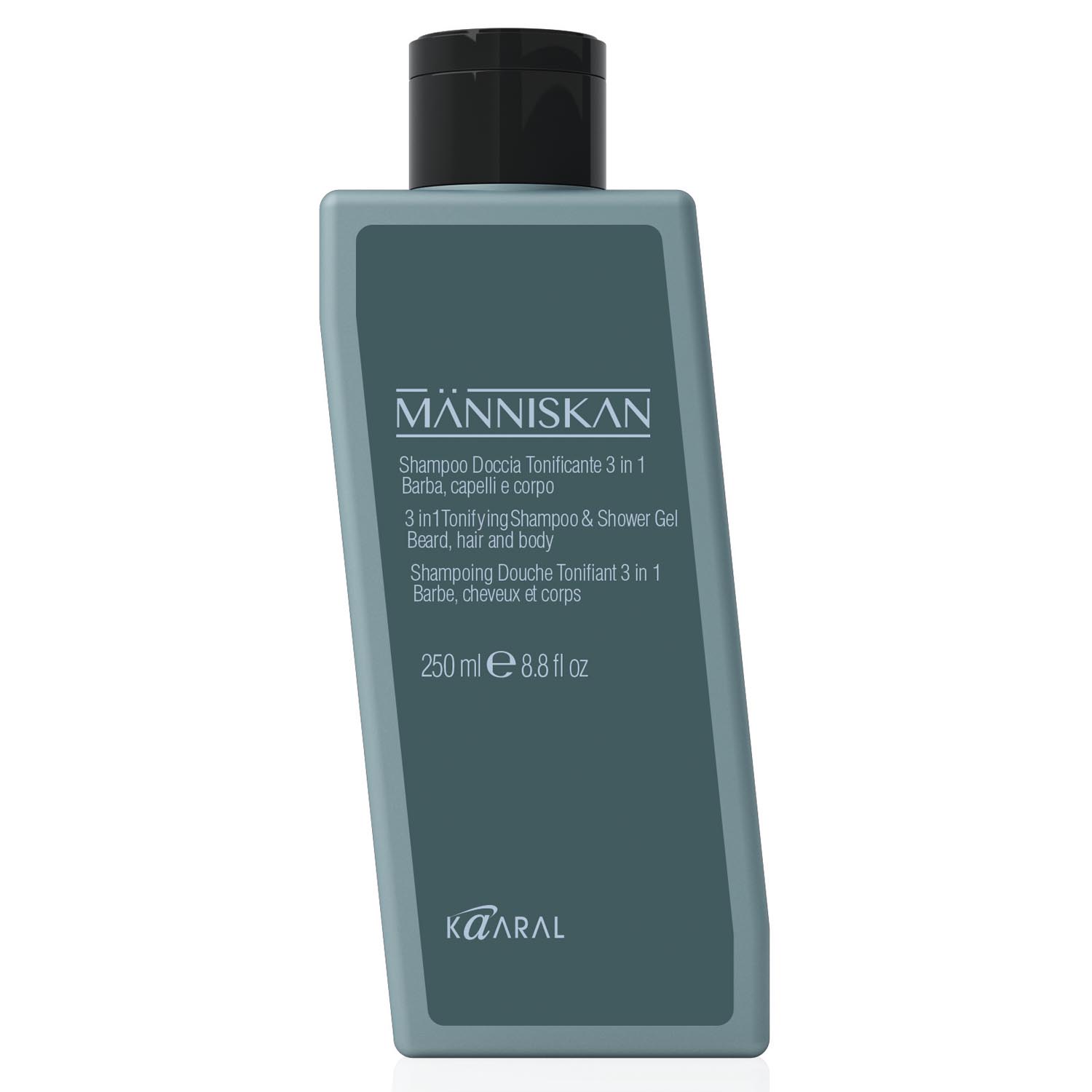 Kaaral Manniskan Тонизирующий шампунь и гель для душа 3в1 для бороды, волос и тела Мужской - Универсальный шампунь, деликатно очищающий бороду, волосы и тело.