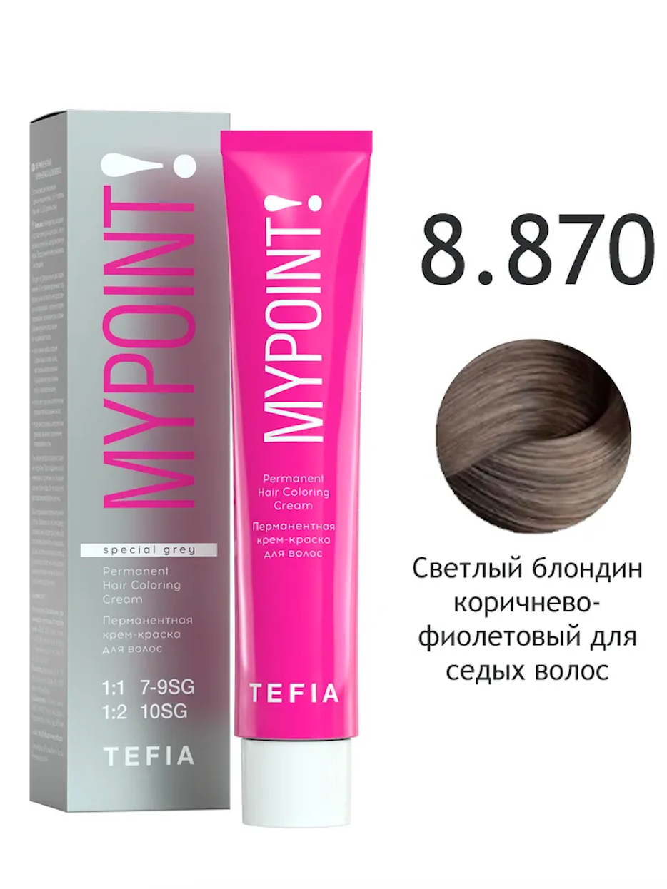 - TEFIA Крем-краска 8.870 Светлый блондин коричнево-фиолетовый для седых волос, 60 мл.
