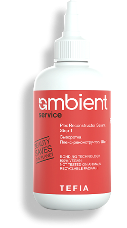 TEFIA AMB Service Сыворотка Плекс-реконструктор Шаг 1 - Используется вместе с Кремом Плекс-фиксатор Шаг 2 для комплексной защиты структуры волос при обесцвечивании, окрашивании, перманентной завивке и выпрямлении, а также для проведения восстанавливающих процедур для сильно поврежденных волос.