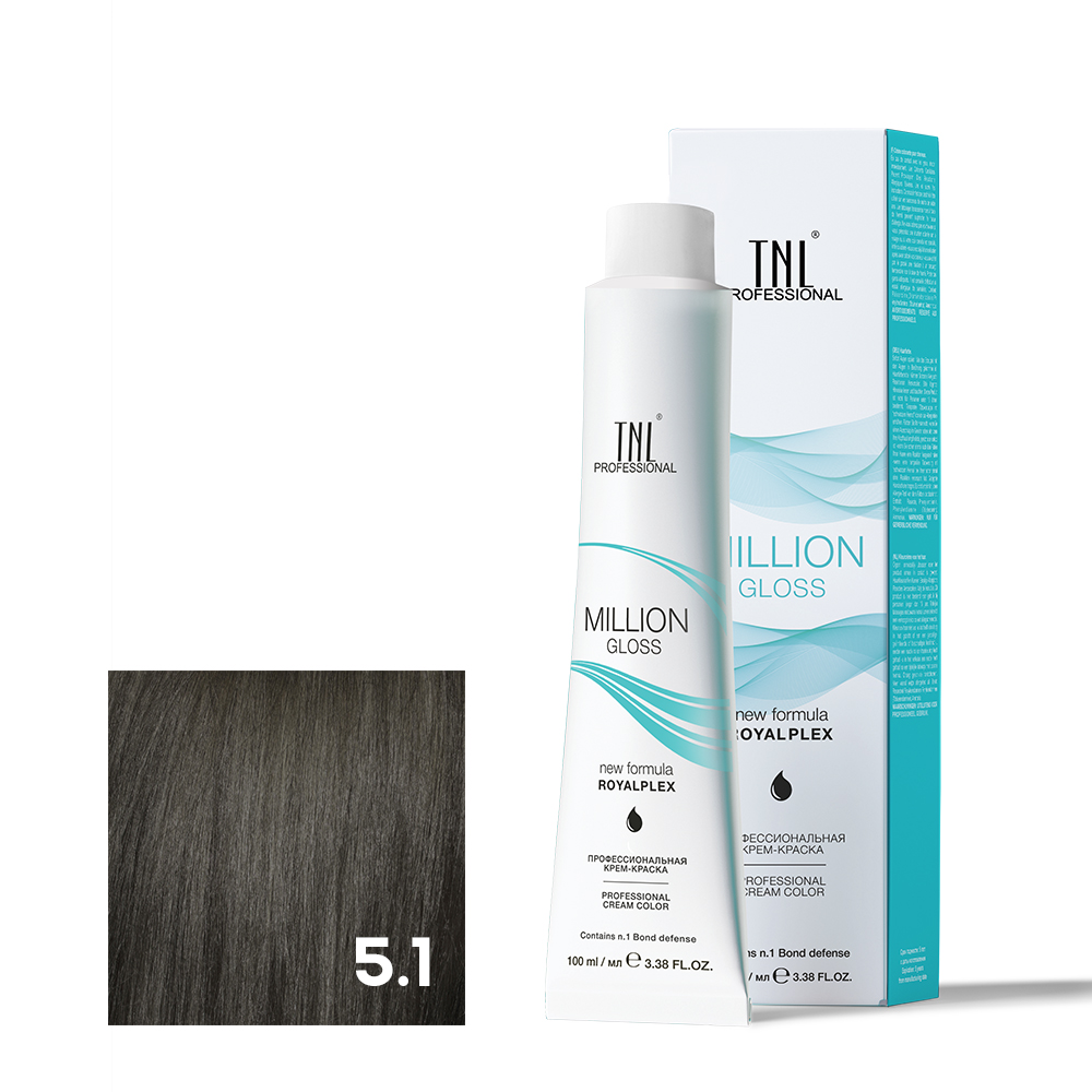 - TNL 5.1 Крем-краска для волос Million Gloss, светлый коричневый пепельный, 100 мл.