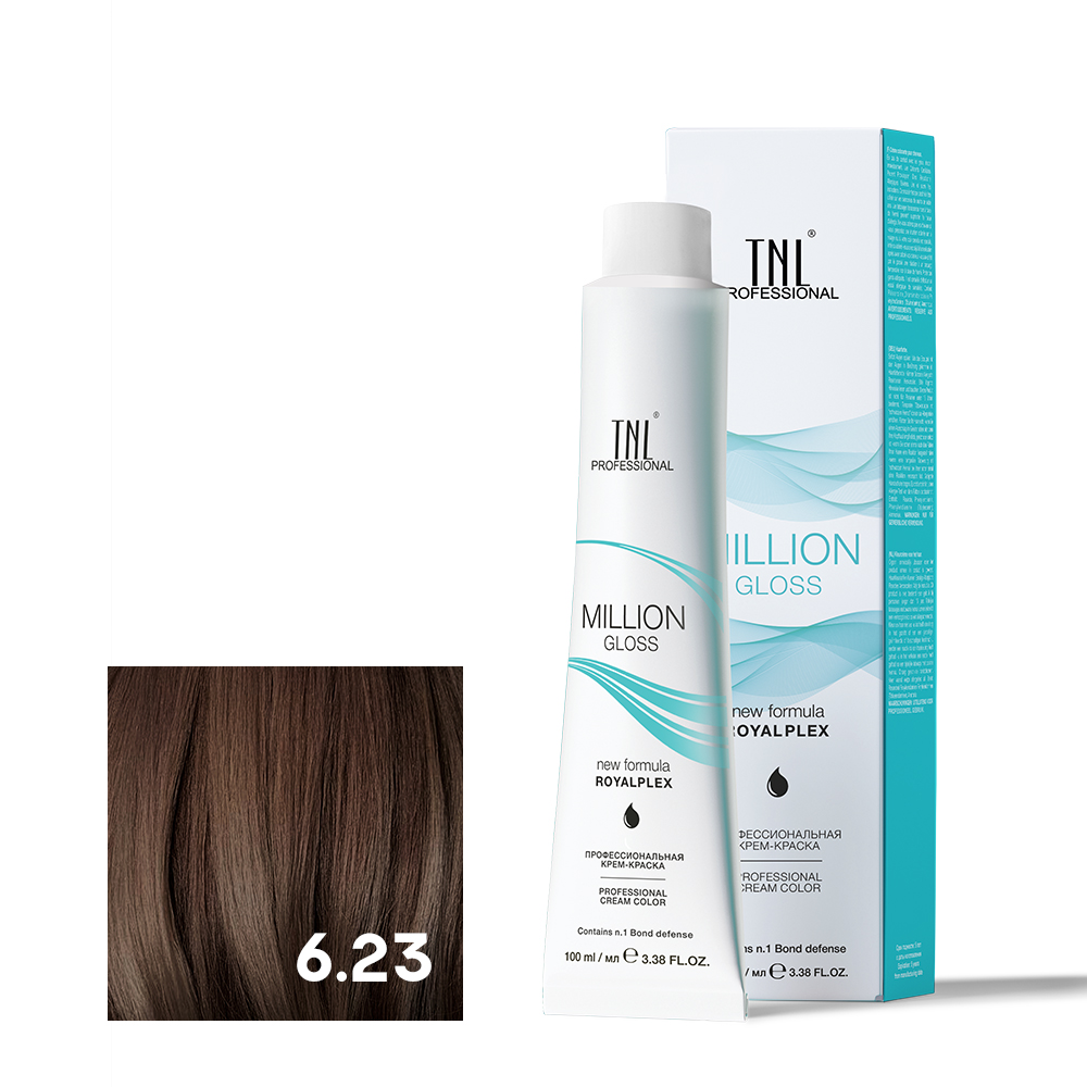 - TNL 6.23 Крем-краска для волос Million Gloss, темный блонд перламутровый золотистый, 100 мл.