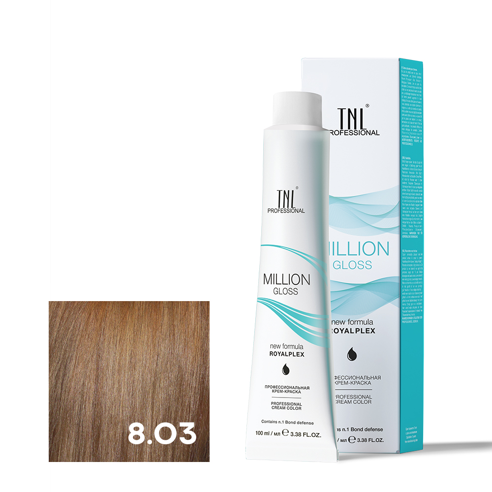 - TNL 8.03 Крем-краска для волос Million Gloss, светлый блонд теплый, 100 мл.