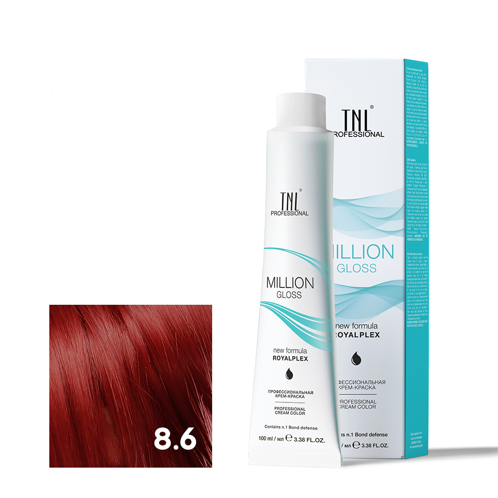 - TNL 8.6 Крем-краска для волос Million Gloss, светлый блонд красный, 100 мл.