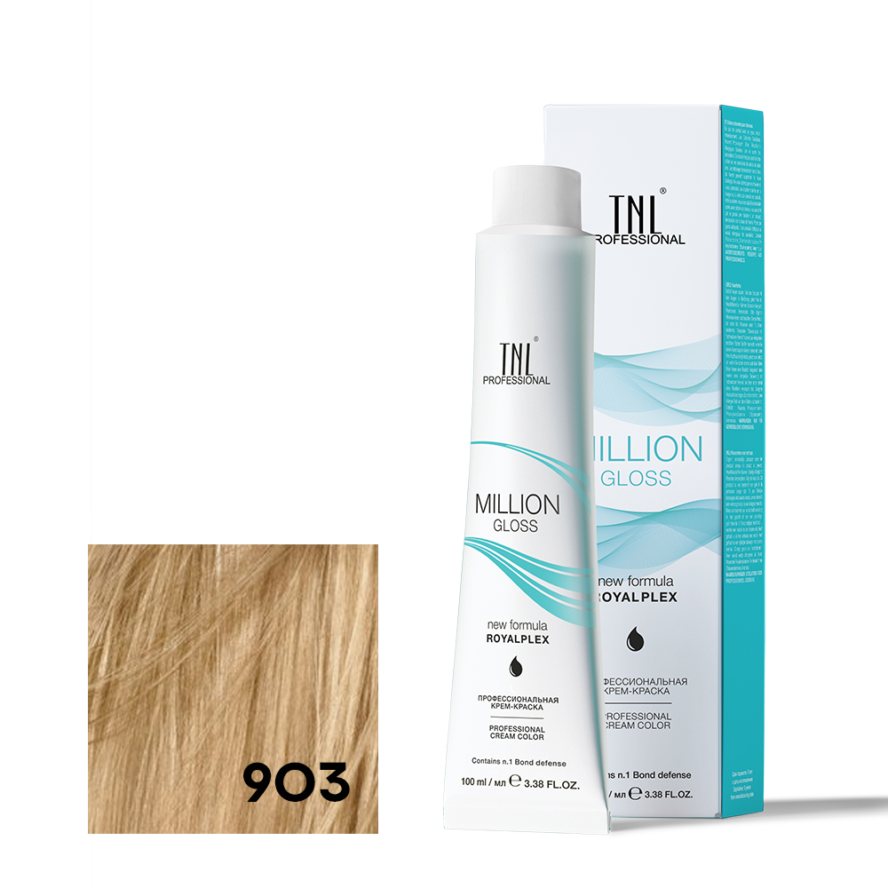 - TNL 903 Крем-краска для волос Million Gloss осветляющий золотистый, 100 мл.