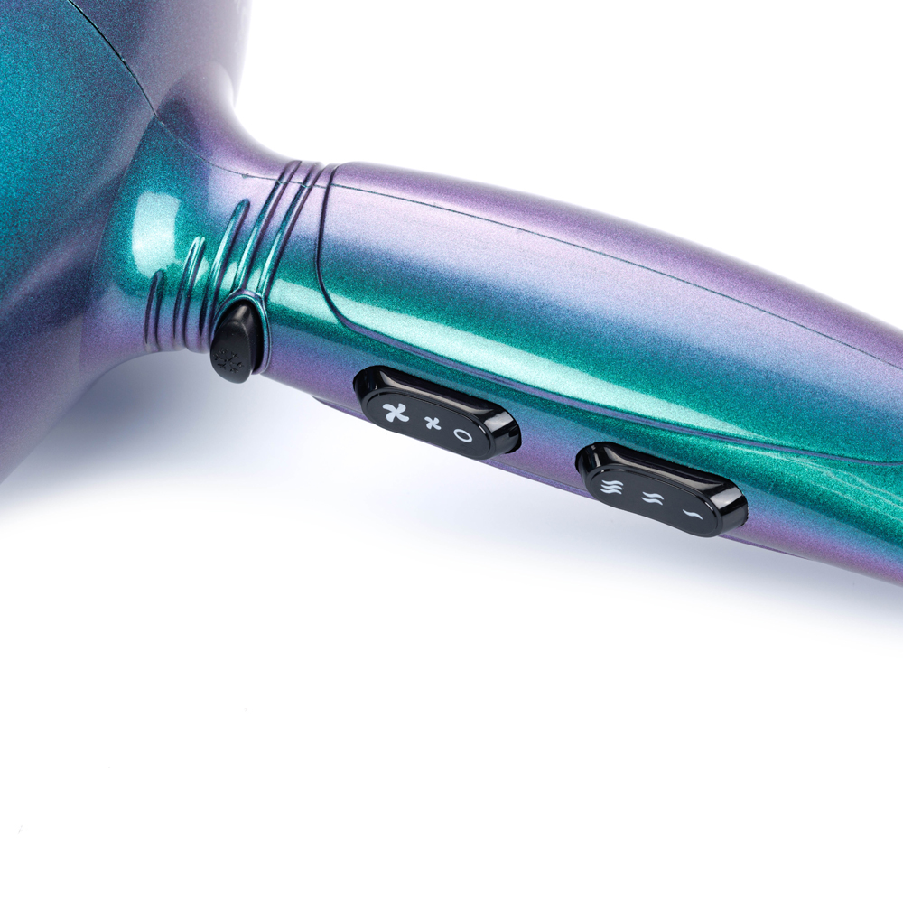 Этот фен привлекает своим необычным цветом корпуса - Хамелеон. В зависимости от освещения цвет меняется от зеленого до темно-голубого с перламутровым отливом.