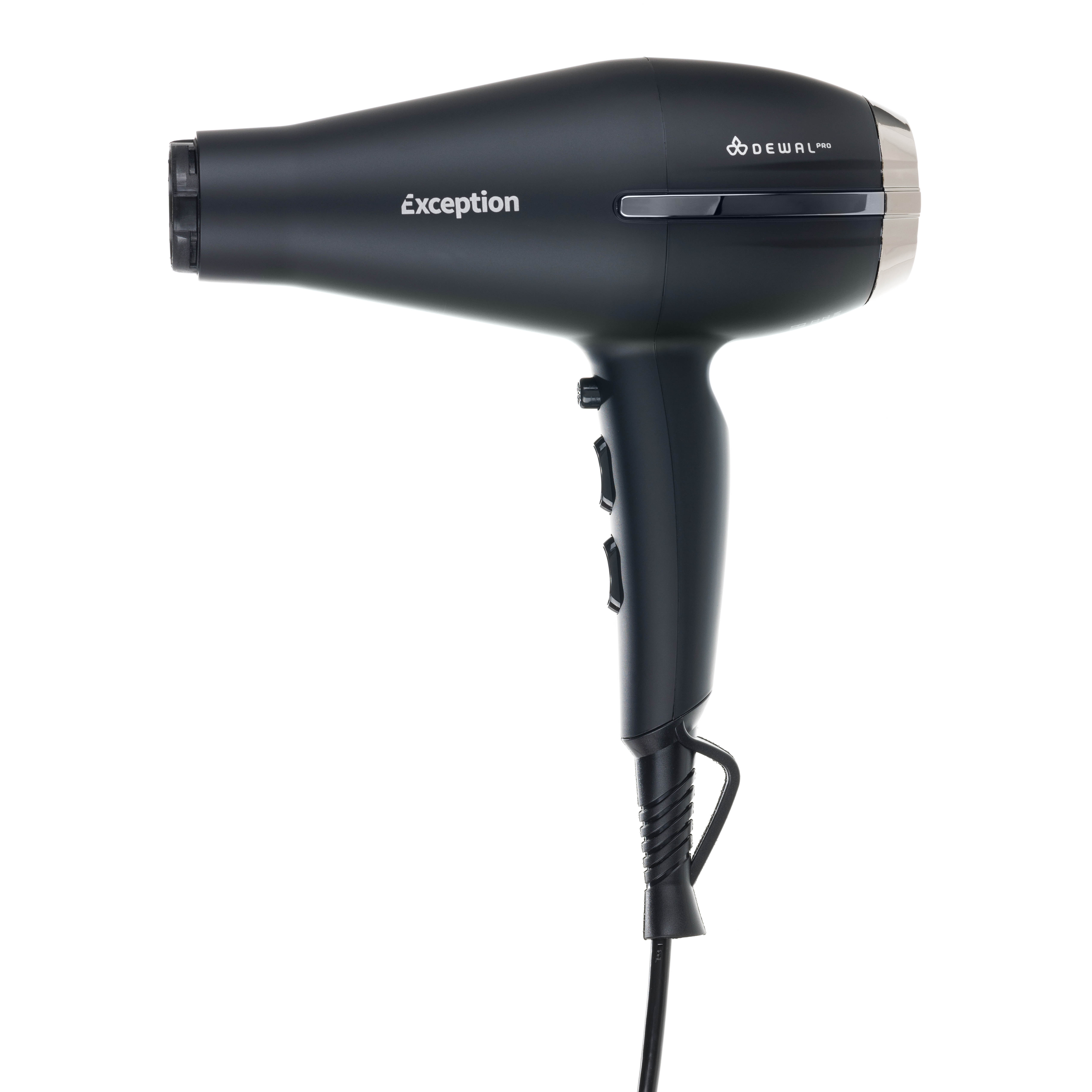 03-113 Black DEWAL Фен Exception 2200 Вт, 2 насадки, ионизация, компактный.
