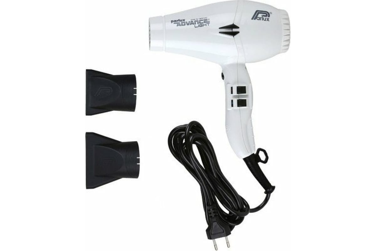 - 0901-Adv White Фен PARLUX Advance Light Ceramic+Ionic белый, 2200 Вт, 2 насадки, ионизация