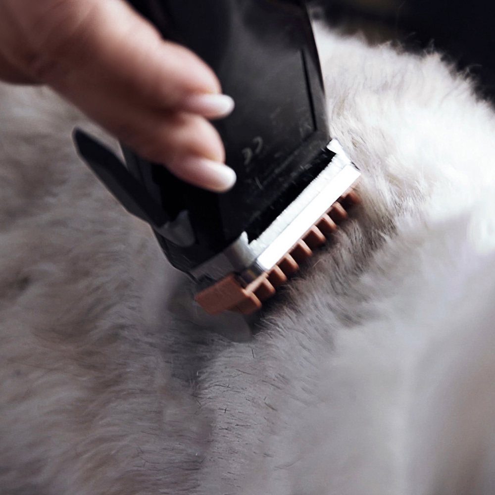 Гребенка с бороздками лучше скользит по меху, лезвия медленнее нагреваются.
