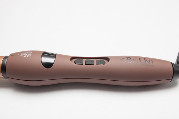 Кнопки регулировки температуры утоплены в корпус, что не позволяет случайным образом изменить нагрев плойки.