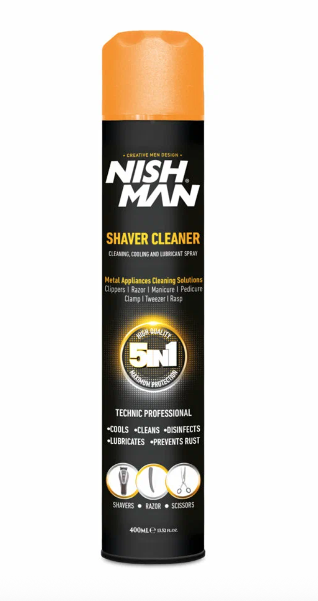 NISHMAN Очищающий спрей для машинок 5в1 - это средство, предназначенное для комплексного ухода за инструментами для парикмахеров и барберов.