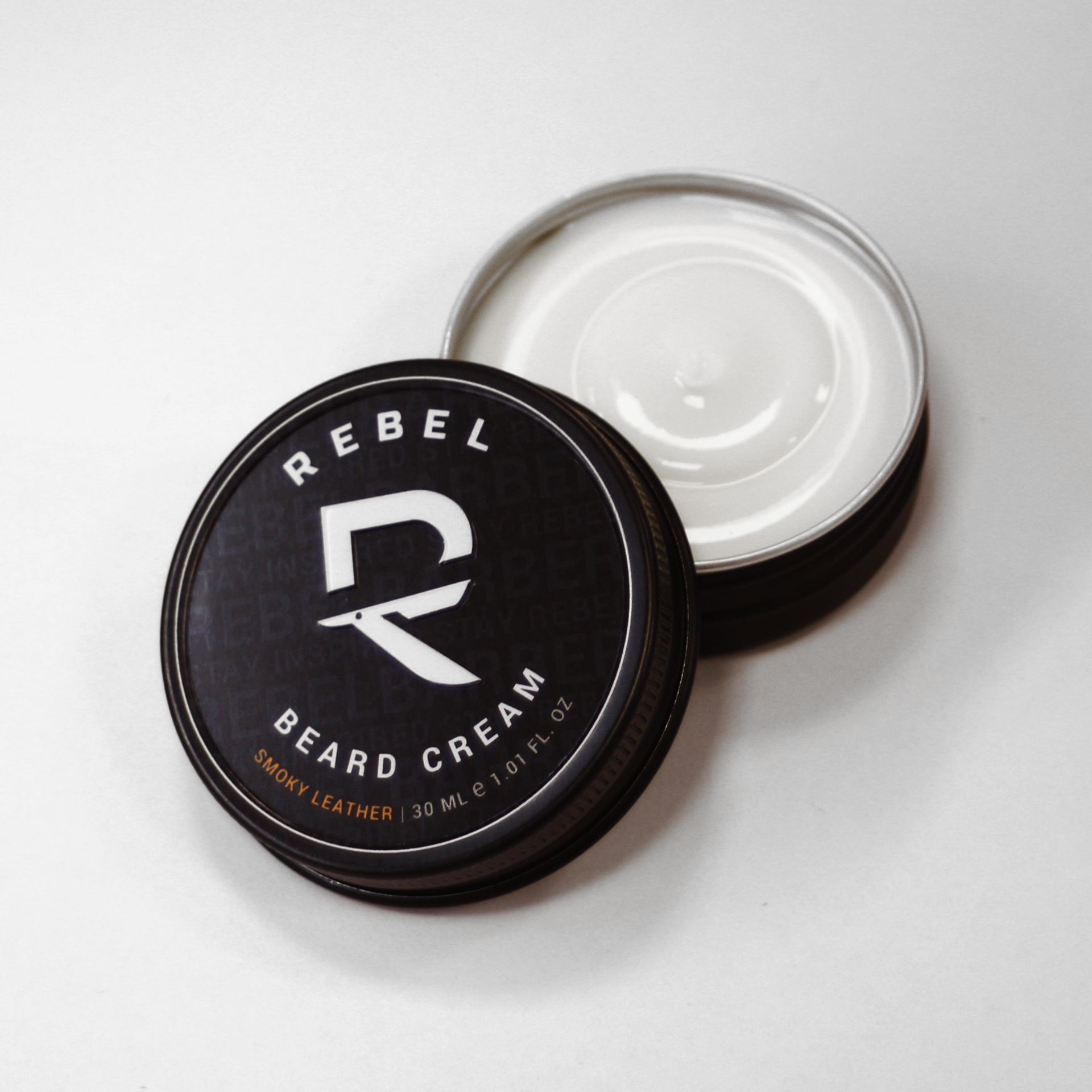 REBEL BARBER Премиальный крем для бороды и усов - имеет аромат SMOKY LEATHER.