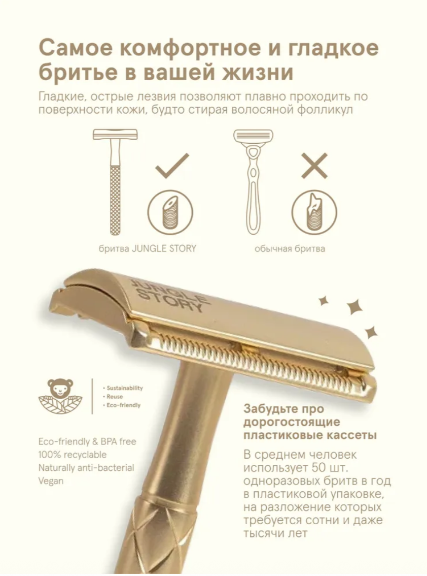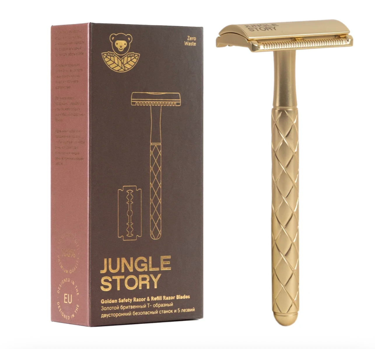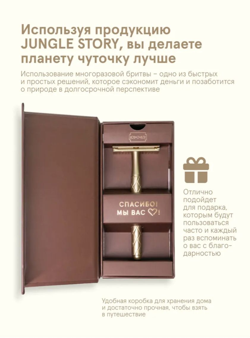 JUNGLE STORY Бритвенный станок Золотой - в подарочной картонной коробке на магните с 5 сменными лезвиями.