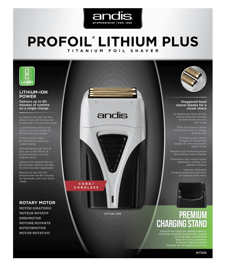 Снабжена двумя независимо двигающимися плавающими головками и двойной литий-титановой позолоченной сеткой. Шейвер разработан для сухого гладкого бритья щетины, подчистки оставшихся после окантовки волос или финишной шлифовки фейдов. Барберы применяют ProFoil Lithium+ для проработки контуров и сведения к нулю при фейдинге. Бритва чисто удаляет волосы, оставляя кожу гладкой выбритой, мягкой на ощупь. Шейвер применяют для гладкого бритья лица или головы «под ноль» дома.