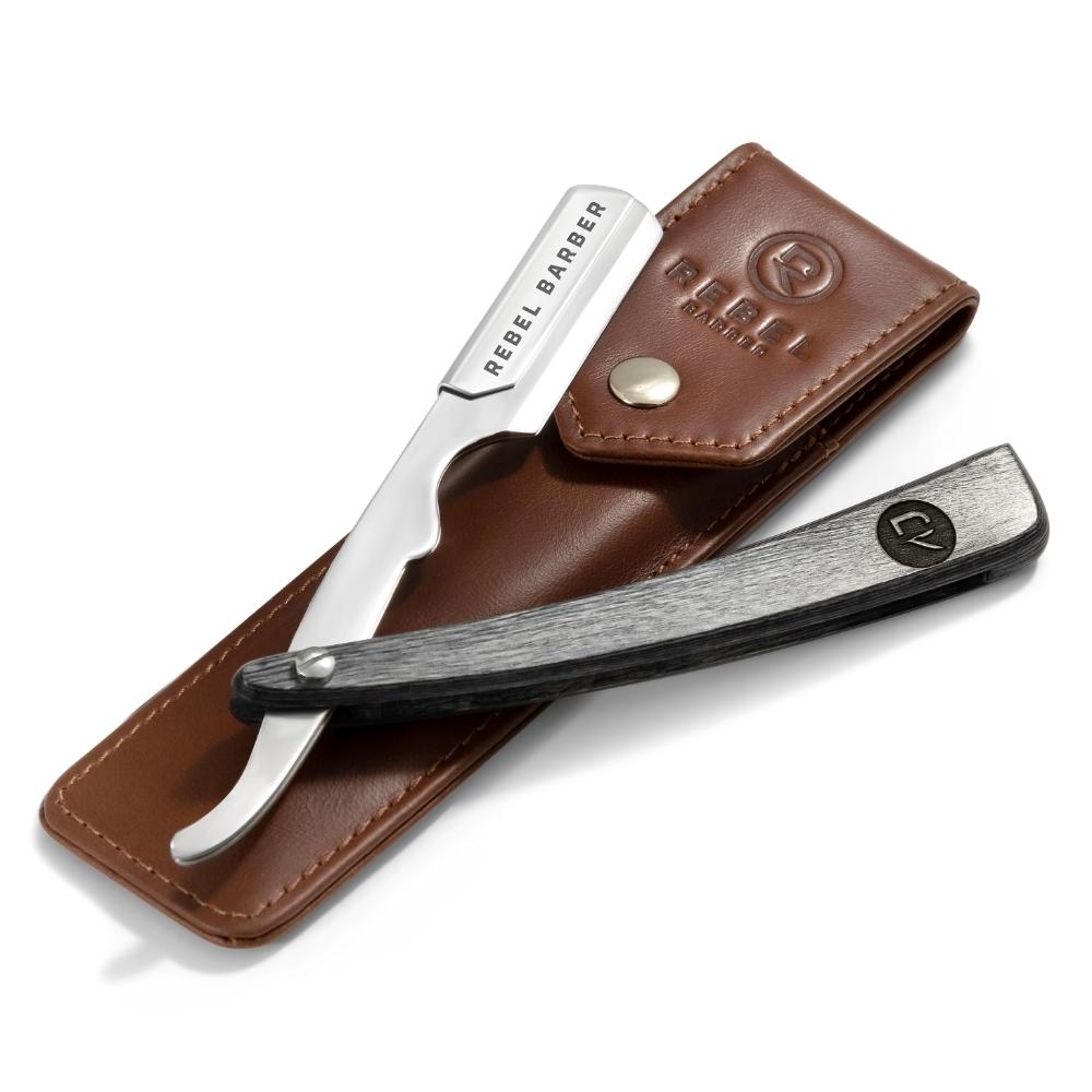 REBEL BARBER Опасная бритва со сменным лезвием и деревянной ручкой - в ретро стиле в комплекте с премиальным кожаным чехлом.