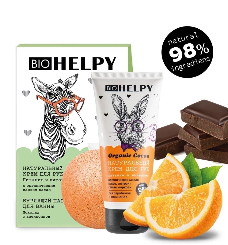 - Bio Helpy Набор №1 Бурлящий шар для ванны + крем для рук