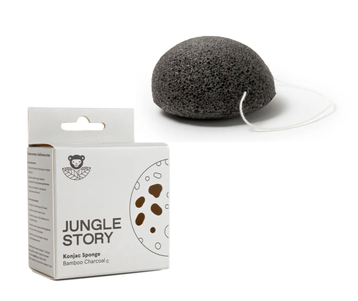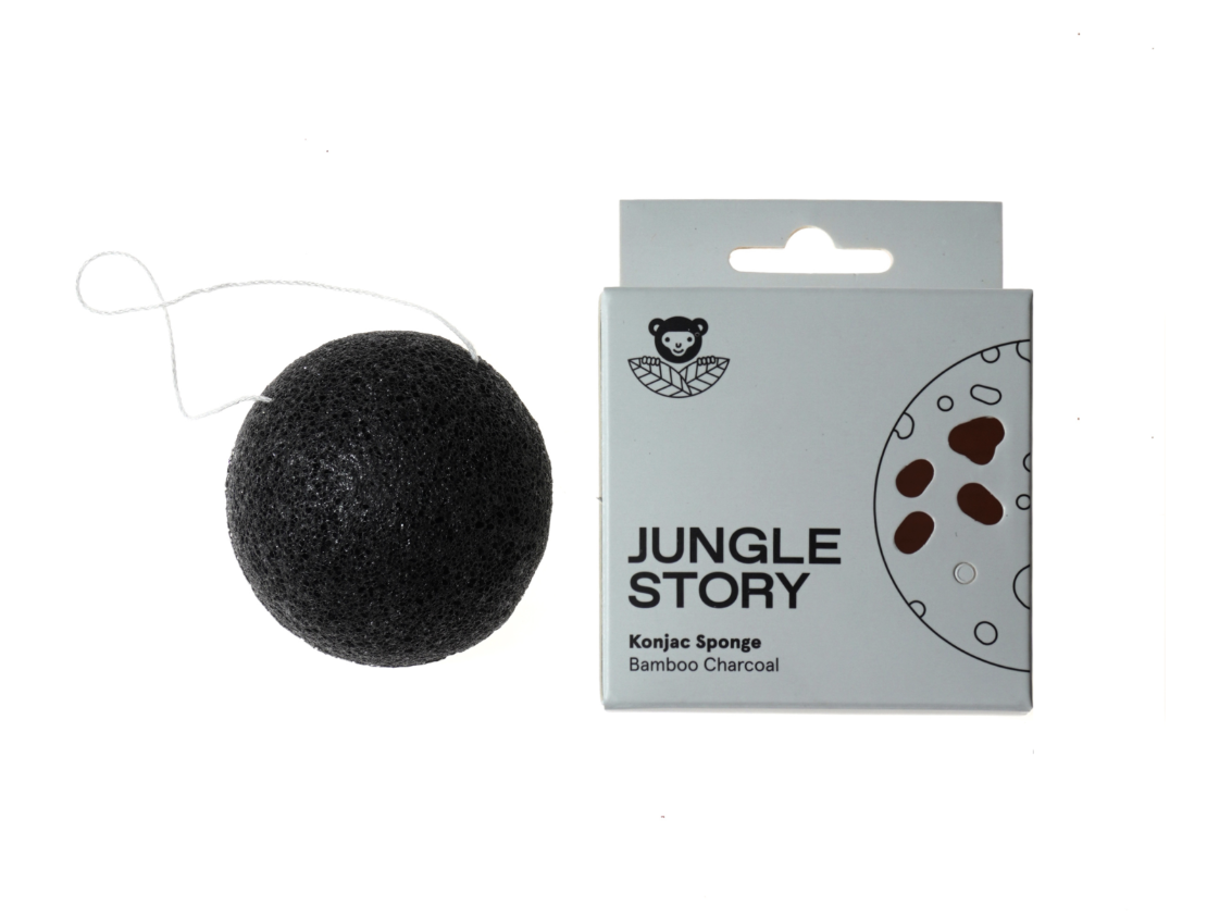JUNGLE STORY Спонж с бамбуковым углем - сделанный из корня растения конняку, идеально подходит для нежного очищения, пилинга и массажа вашей кожи.