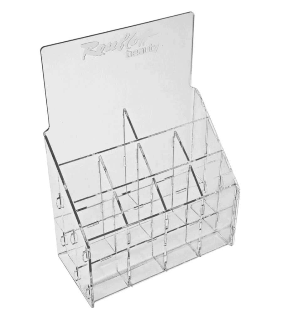 Стильный и удобный дисплей для хранения кистей, косметических палитр и других инструментов мастера. Позволяет сделать рабочее место более организованным.