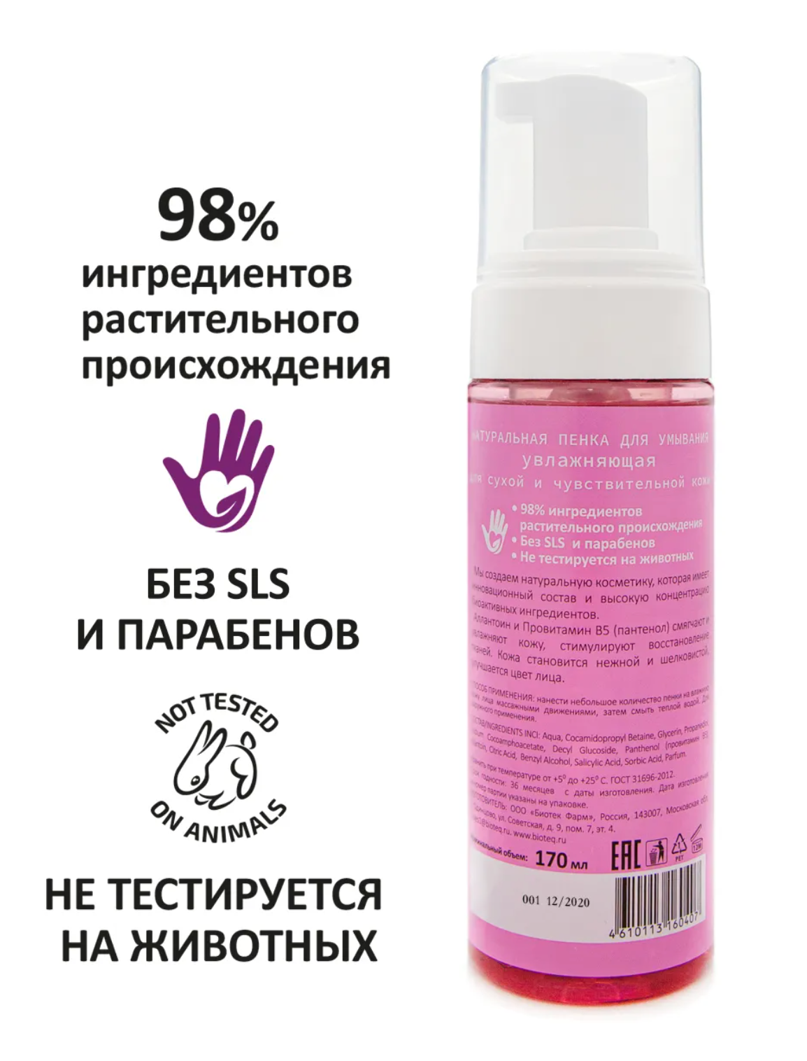Bio Helpy Натуральная пенка для умывания Увлажняющая - имеет инновационный состав и высокую концентрацию биоактивных ингредиентов.