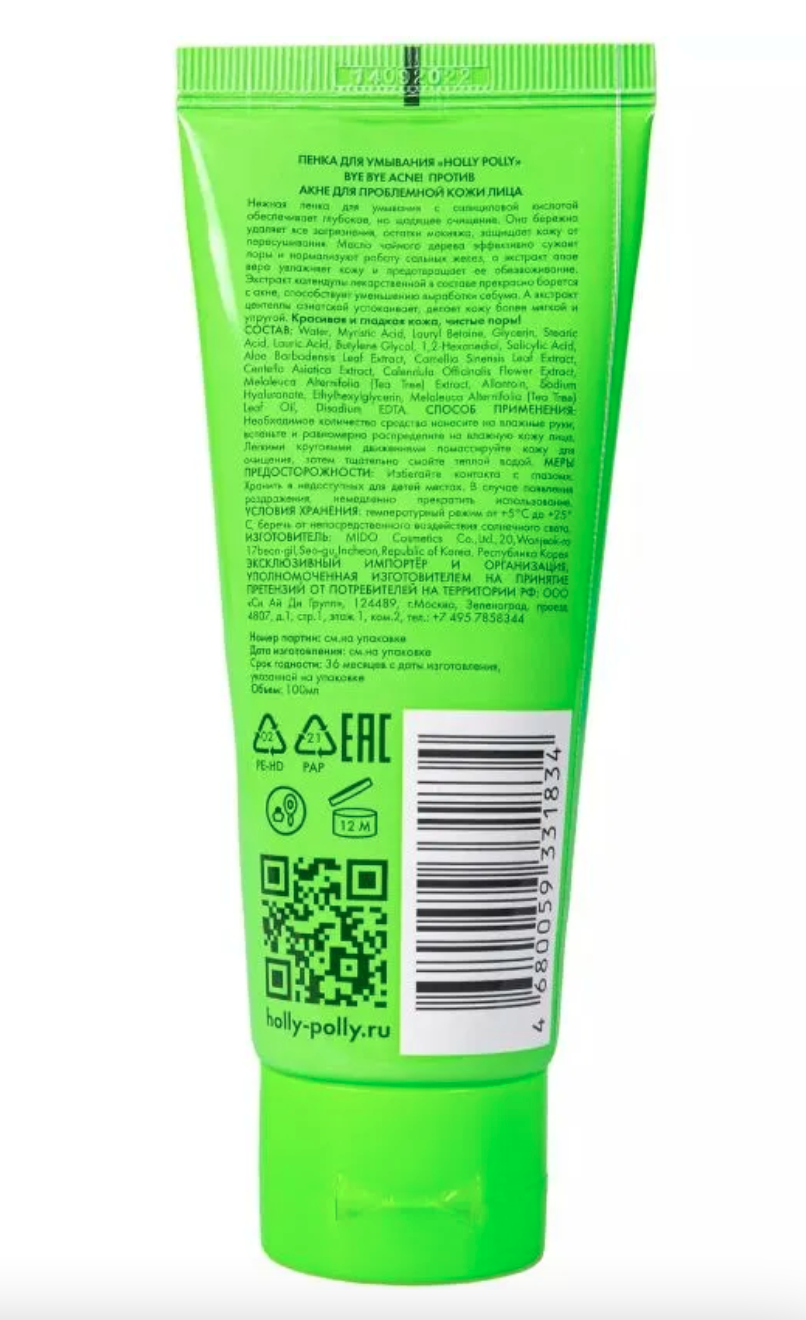 - Holly Polly Пенка для умывания против акне и воспалений, 100 мл.