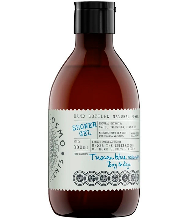 ETERIA COSMO Гель для душа Розмарин лавр и шалфей - Свежий и бодрящий аромат розмарина переплетается с благородными нотами лавра, пряно-травяные акценты бархатистого шалфея, создают утонченную композицию, которая наполняет дом чистотой и освежает сознание.